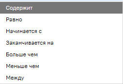 В окне настройки фильтра выберите тип фильтра из возможных значений:
