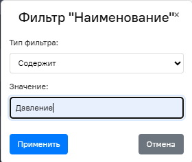 введите нужное значение и нажмите кнопку Применить. После применения фильтра на экране остаются параметры, заданные фильтром и символ