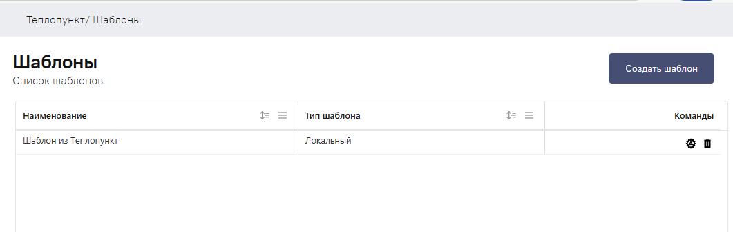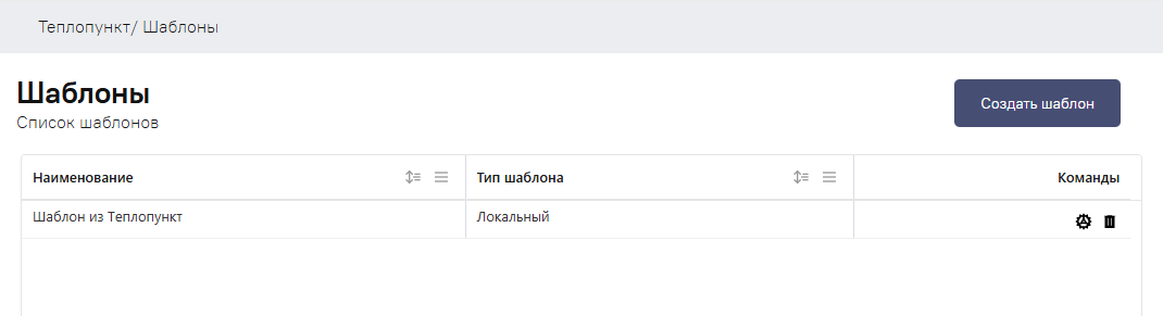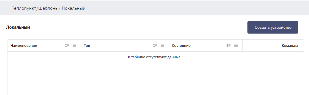На странице «Шаблоны» отображается список созданных шаблонов устройств и кнопка для создания нового шаблона: