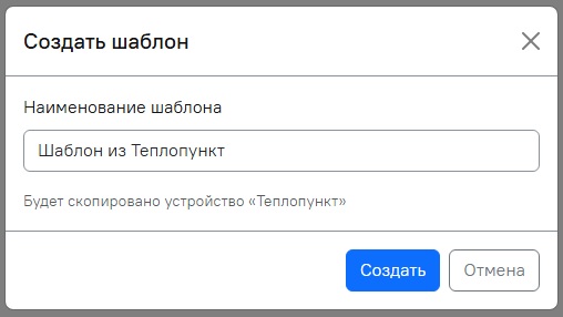 ". На дисплей выдается окно создания шаблона из выбранного устройства, введите наименование шаблона и нажмите кнопку "Создать".