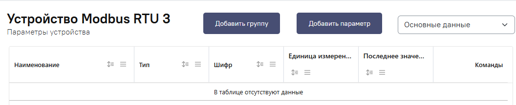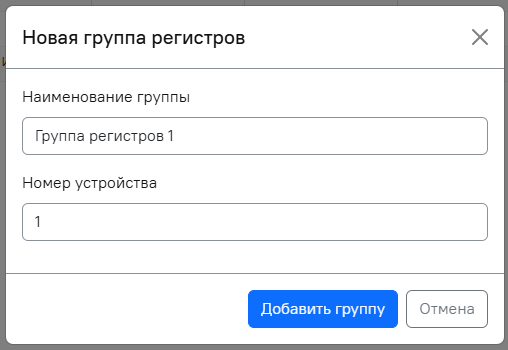 Для добавления группы параметров нажмите на кнопку «Добавить группу» на странице "Параметры устройства" или на странице "Дерево устройств" выполните команду "